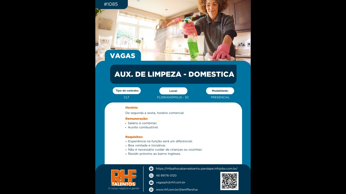Estamos à procura de uma profissional cuidadosa, organizada e com experiência, que possa contribuir com a limpeza e organização da casa.