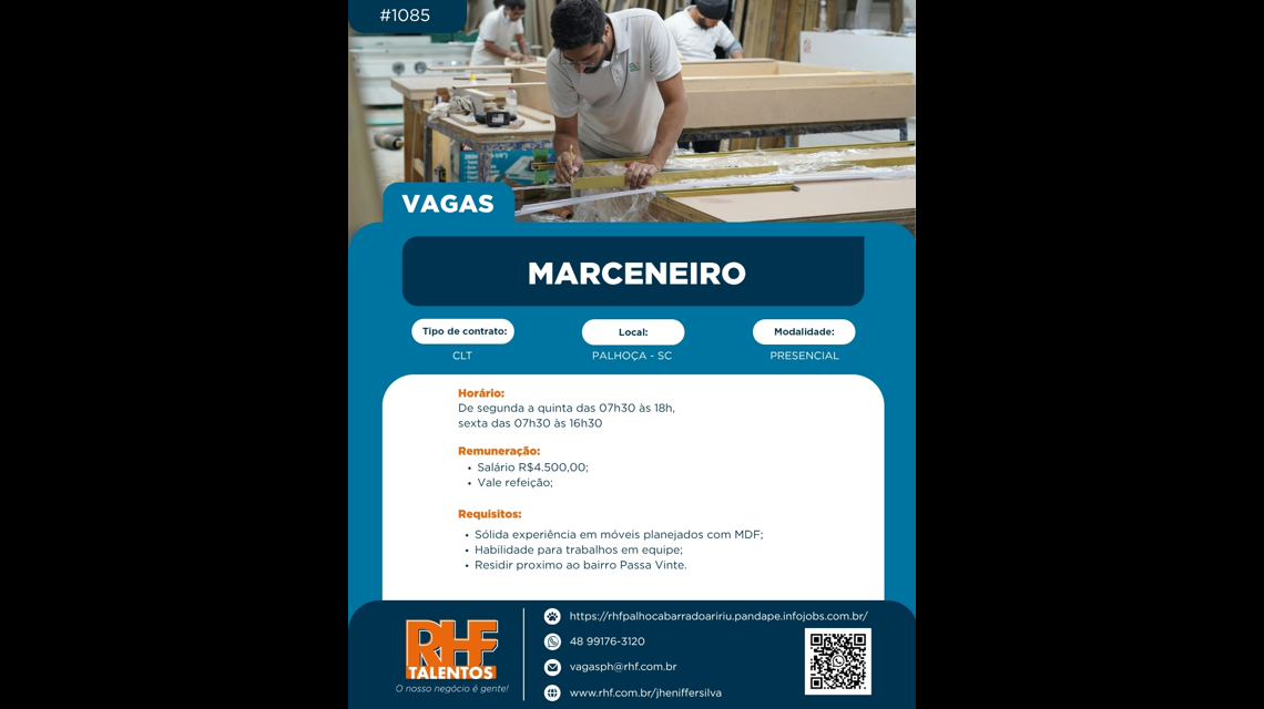- Conhecimento avançado em marcenaria