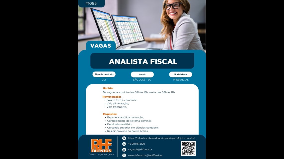 Buscamos alguém comprometido(a), proativo(a) e com visão analítica, atenção aos detalhes e bom relacionamento interpessoal. Se você gosta de desafios e quer crescer profissionalmente na área fiscal, essa oportunidade é para você!
