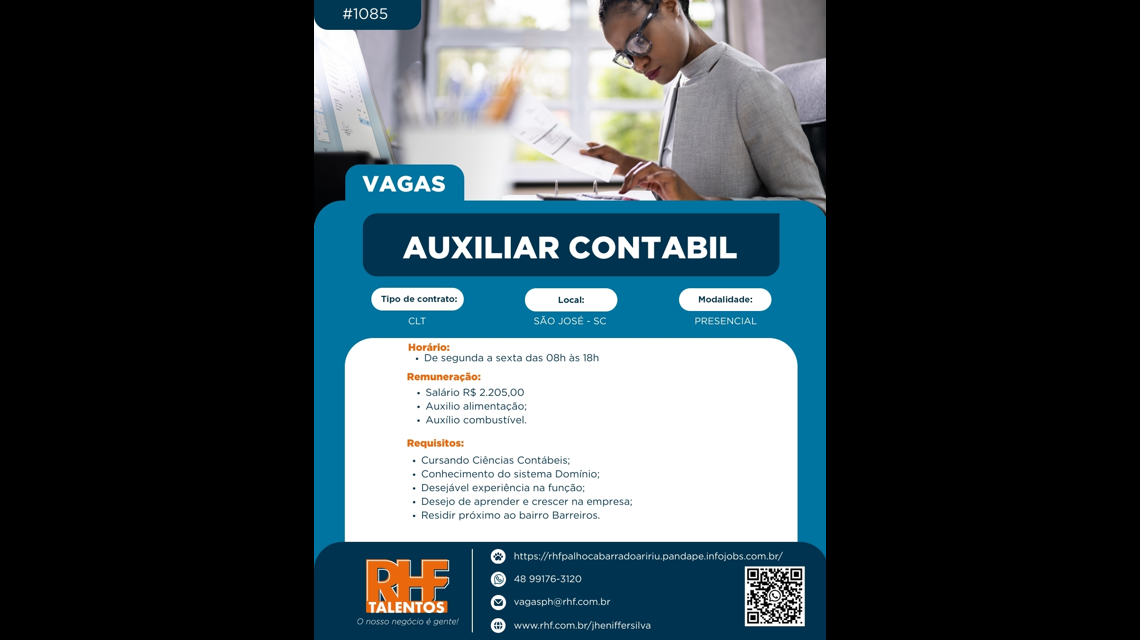 Escritório de Contabilidade está em busca de Auxiliar Contábil para integrar a sua equipe.
