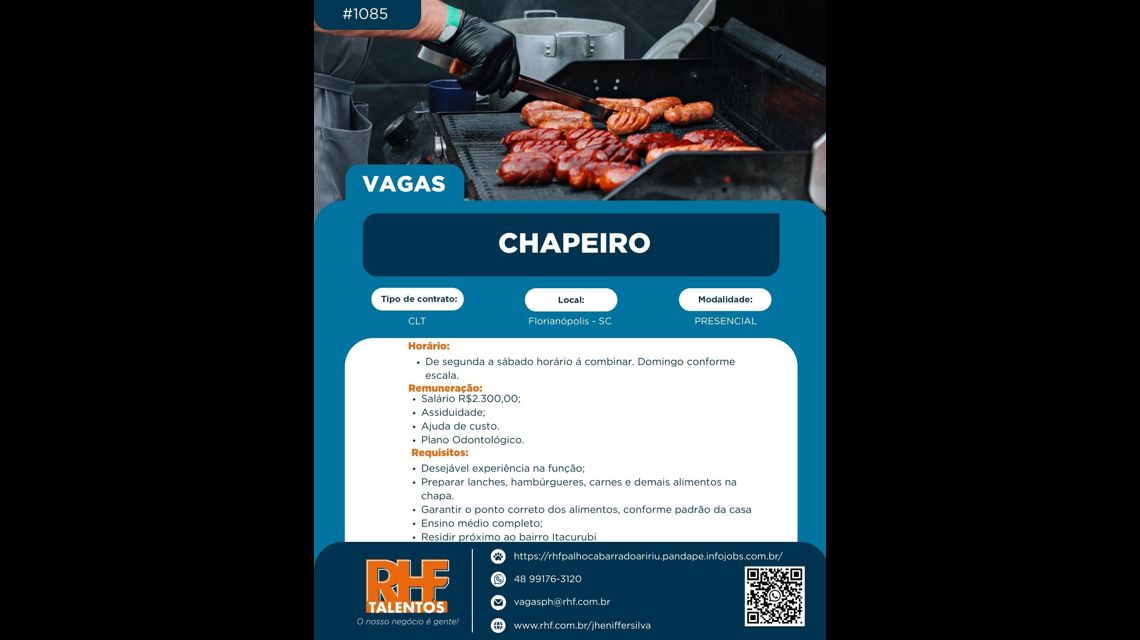 - Experiência prévia como chapeiro ou em funções similares (desejável)