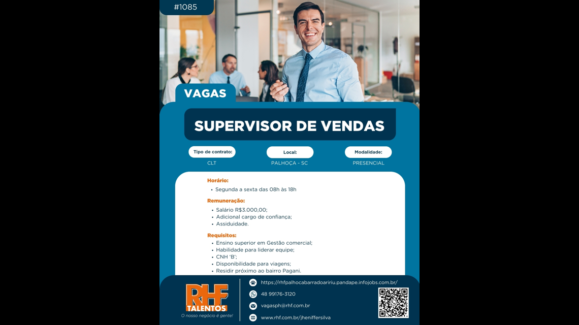 📢 VAGA ABERTA – SUPERVISOR(A) DE VENDAS