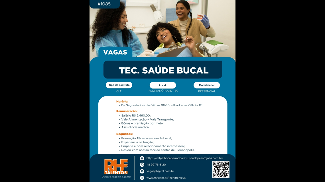 🦷 Vaga: Técnico(a) em Saúde Bucal – Florianópolis/SC