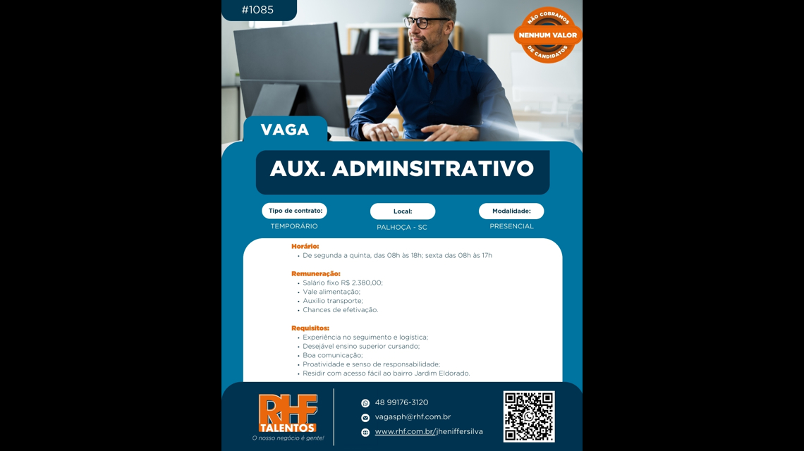 📢 VAGA DE EMPREGO – AUXILIAR ADMINISTRATIVO